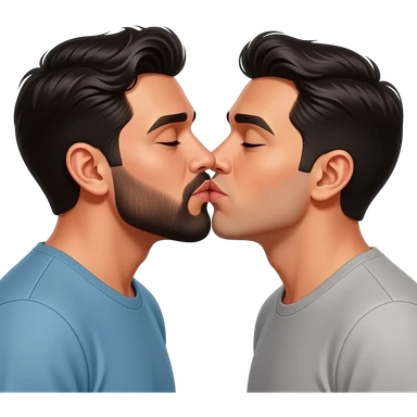 Two realistic Latino men with beards kissing passionate emoji