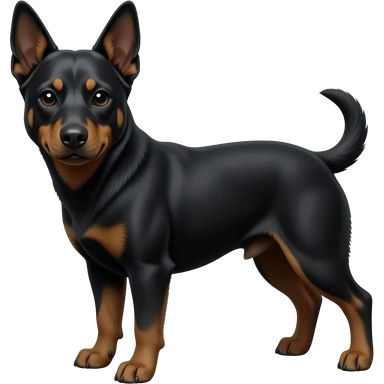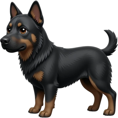 Totally black dog with a small Barrow head and upright ears , Long Hair and Blogger body emoji