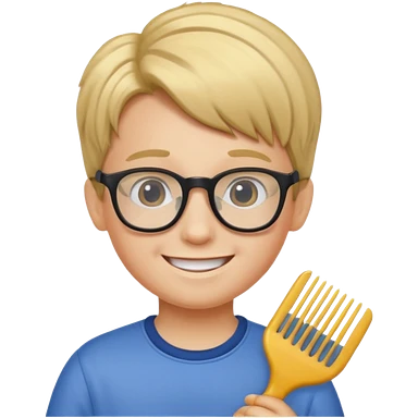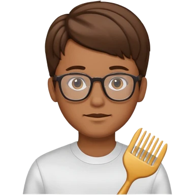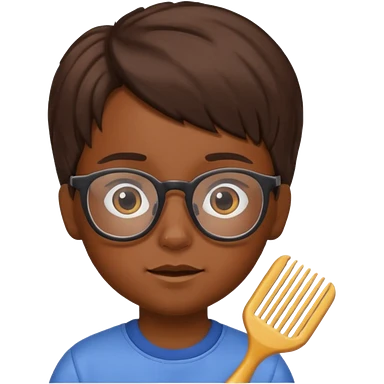 Kid with comb hair and glasses brown hair boy and tan skin color emoji