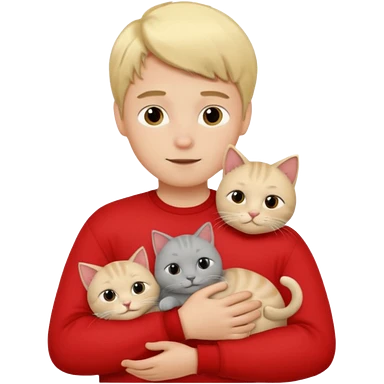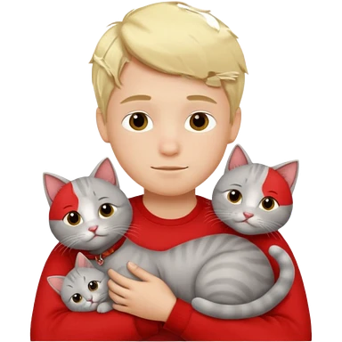 Make 20 gray cats cudling a kid that’s a boy wearing all red and he’s blond emoji