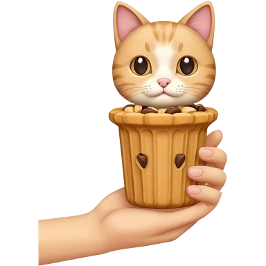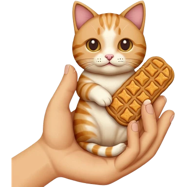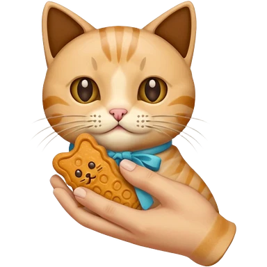 Create this which a hand holding a cat treat emoji