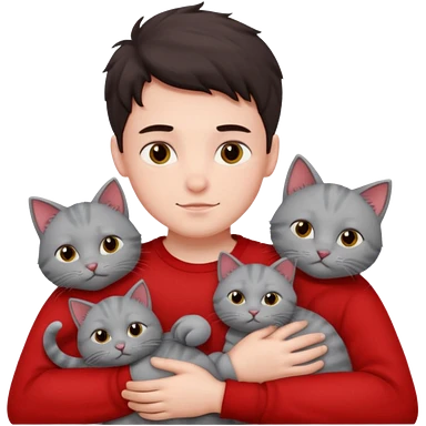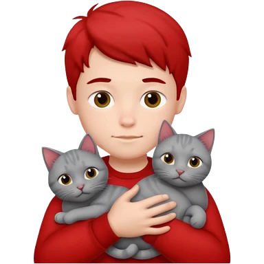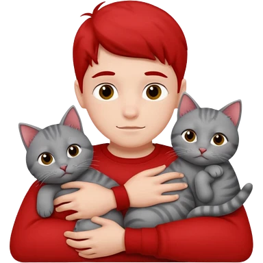 Make 20 gray cats cudling a kid that’s a boy wearing all red emoji