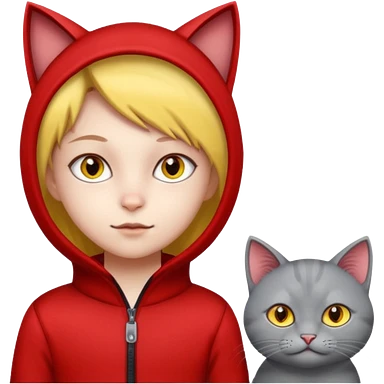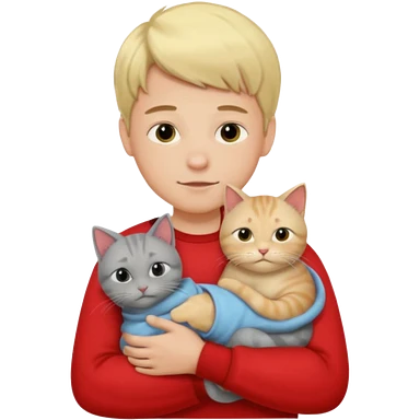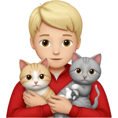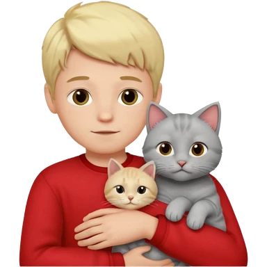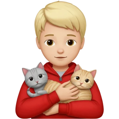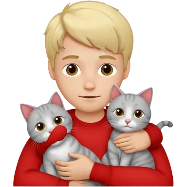 Make 1 gray cats cudling a kid that’s a boy wearing all red and he’s blond emoji