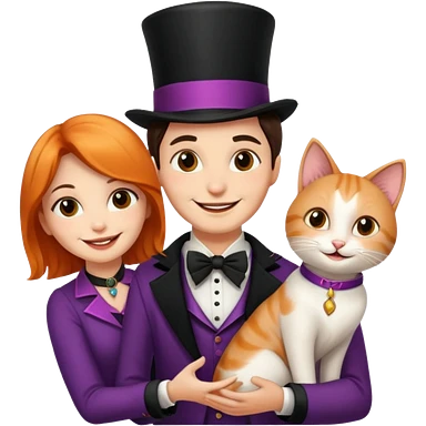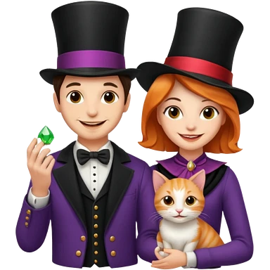 magician couple and their pet cat emoji