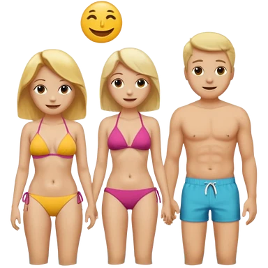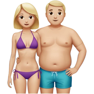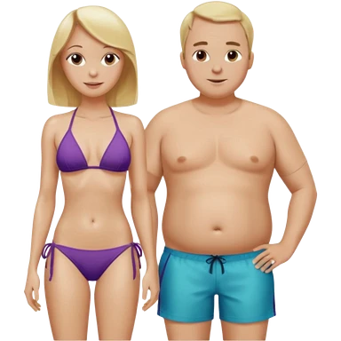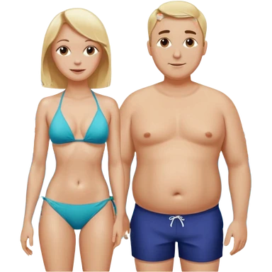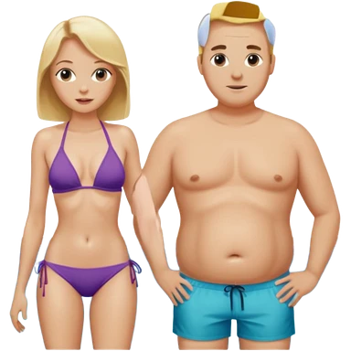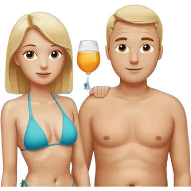 Emoji, 2 alte personen an der poolbar: 1x Frau sehr schlank mit mittellangem, blondem Haar, Bikini/ 1xMann: dicker Bauch, Halbglatze, Badeshorts. emoji