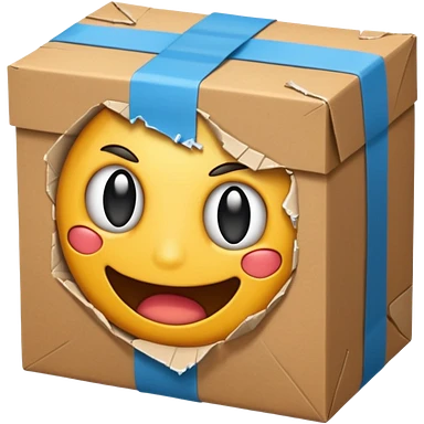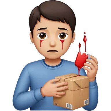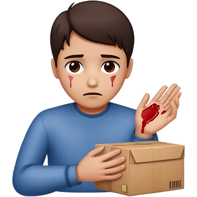 Generate a realistic emoji of a package being unpacked and the person is sad because they got hurt by the package emoji