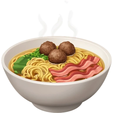 a cow meat ball and ramen stew with bacon emoji