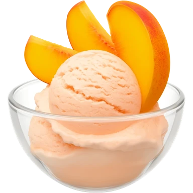 Peach ice cream in a clear glass bowl but 3 peach slices in it make the ice cream a light peach color emoji