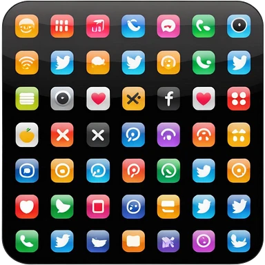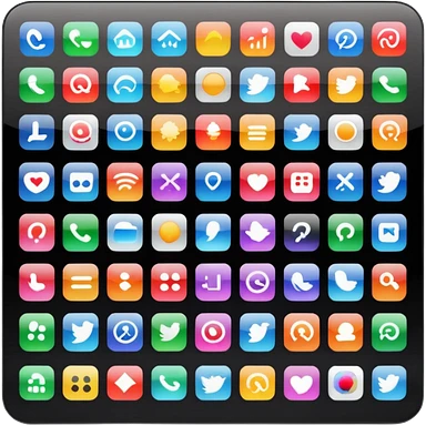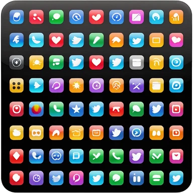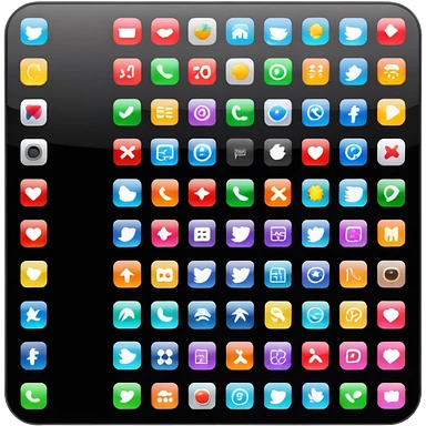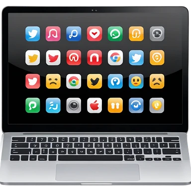 A simple black laptop displaying app icons in a 6x4 grid emoji