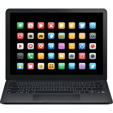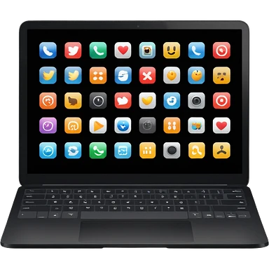 A simple black laptop displaying app icons in grid, no key labels emoji