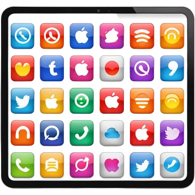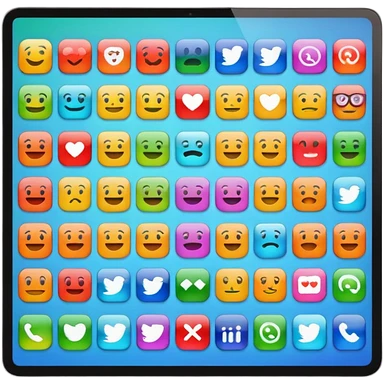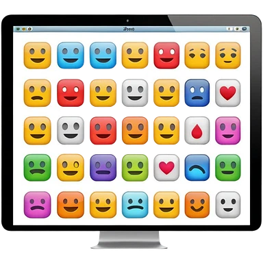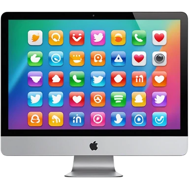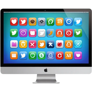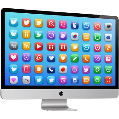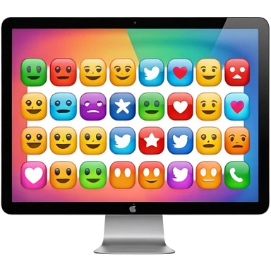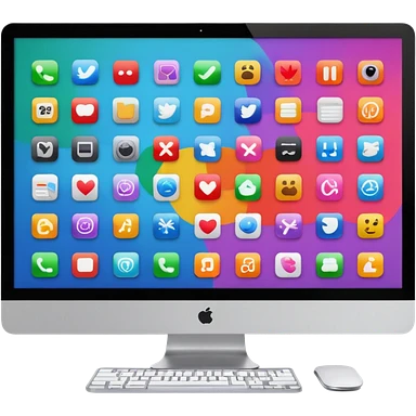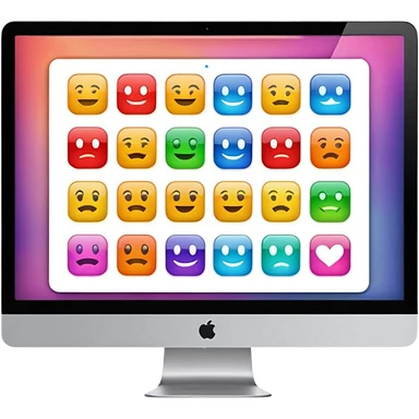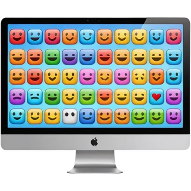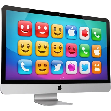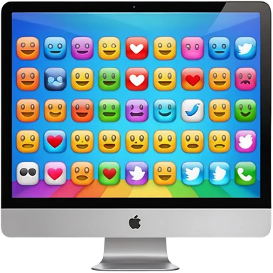 Emoji style simplified iMac screen displaying app icons in grid emoji