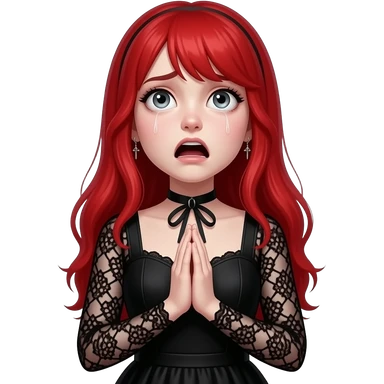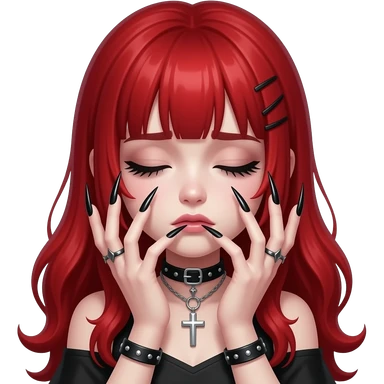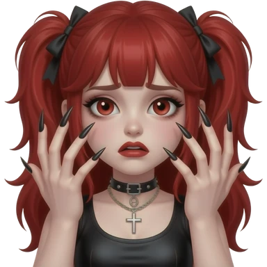 red hair goth girl afraid of God with very long nails and sleepy emoji