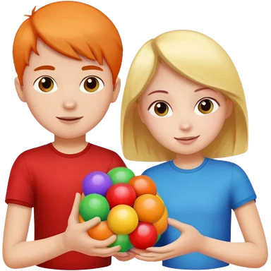 Naked boy and girl with balls and Virgina emoji