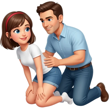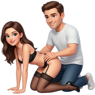 A flirty sexual girl bent over on her knees, having a guy give it to her from the back emoji