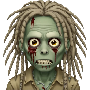 create zombie with dreadlocks have some of the drealocks cover his face emoji