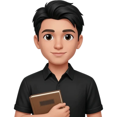 create emoji of boy with fair skin, middle parted hair black, little facial hair, wearing a black shirt and holding an accounts book emoji