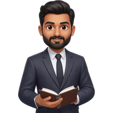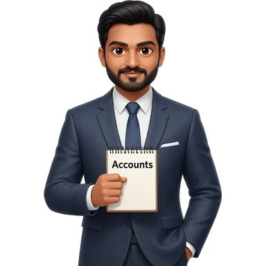 create emoji of man wearing business suit with accounts notebook and the man has middle parting and of indian origin with a goatee emoji