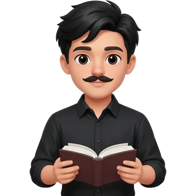 create emoji of boy with fair skin, middle parted hair black, mustache, wearing a full sleeved black shirt and holding an accounts book emoji