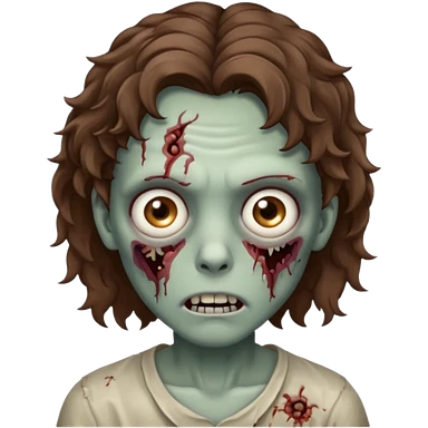 Zombie with lil bit curly medium brown hair in wolf cut hair style emoji