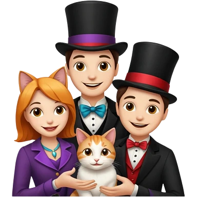 magician couple and their pet cat emoji