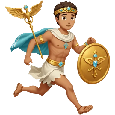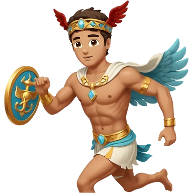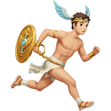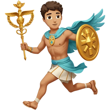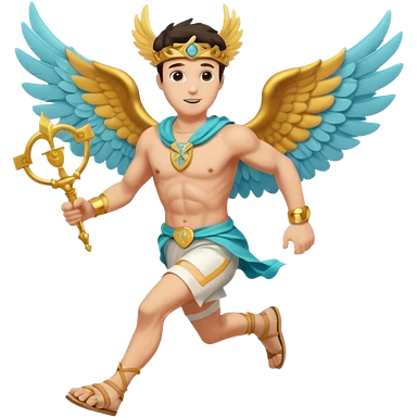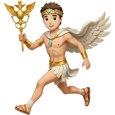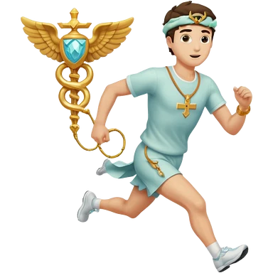 a guy (hermes) running with his caduceus and a petasos on his head (winged helmet) emoji