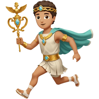 a guy (hermes) running with his caduceus and a petasos on his head in a greek tunic emoji
