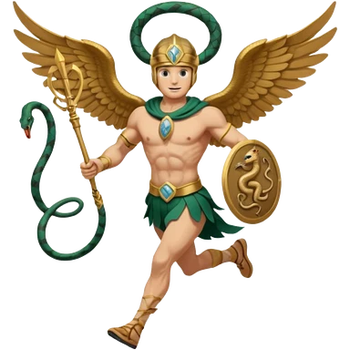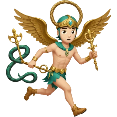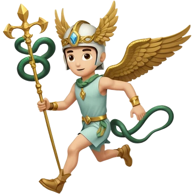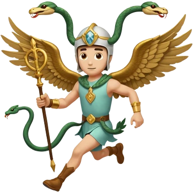 a guy (hermes) running with his caduceus (winged staff + two nakes) and a petasos on his head (winged helmet) emoji