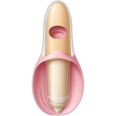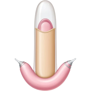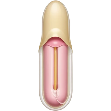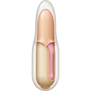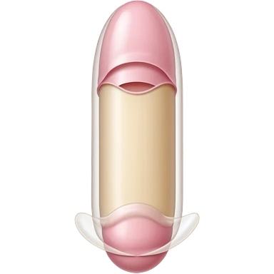 white transparent condom fully covering cylindrical beige-pink colored penis shaft, no face. at top of penis, add glans penis tip, a urethra opening hole/slit line and corona line. at the bottom end/base of penis make it flat. add reservoir tip to top of condom emoji