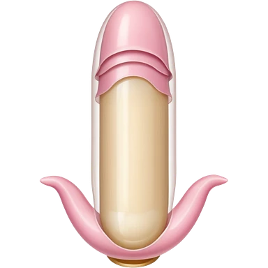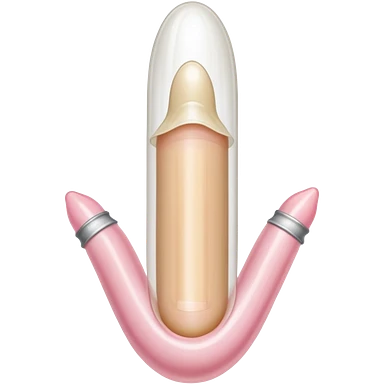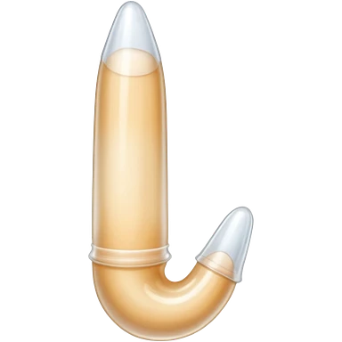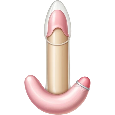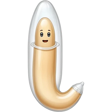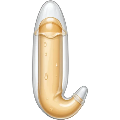 white transparent condom fully covering cylindrical beige-pink colored penis shaft, no face, include glans penis tip urethra opening hole and corona line at one end, base of penis is flat. top of condom has reservoir tip emoji