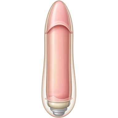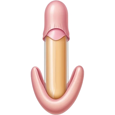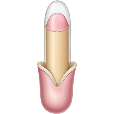 white transparent condom fully covering cylindrical beige-pink colored penis shaft, no face. at top of penis, add glans penis tip, a urethra opening hole/slit line and corona line. at the bottom end/base of penis make it flat. emoji