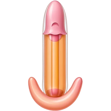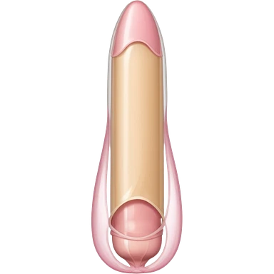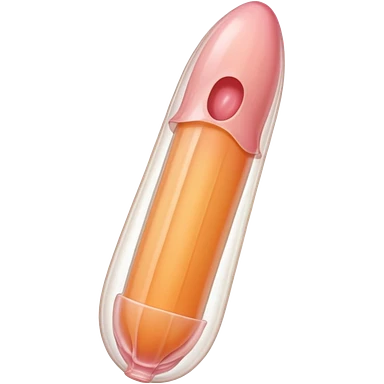 transparent condom fully covering cylindrical beige-pink penis shaft, no face. at top of penis, add glans tip that is covering approximately 1/5th length of the penis, peach shaped tip and corona line. at the bottom end/base of penis make it flat. add reservoir tip to top of condom emoji