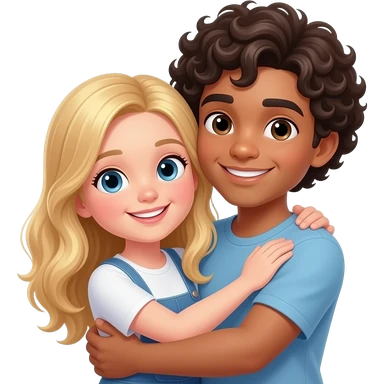 Two friends hugging, a girl with blonde hair and a guy with dark curly hair emoji