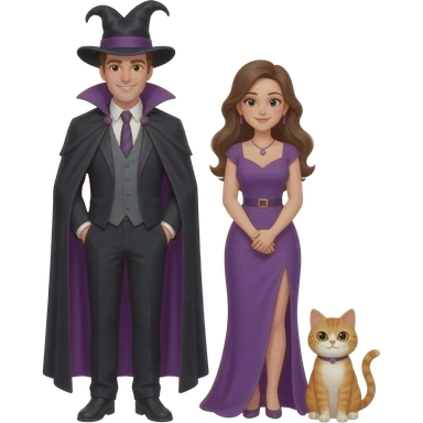 magician couple and their pet cat emoji