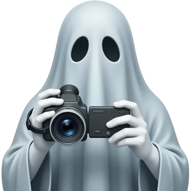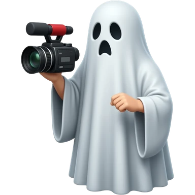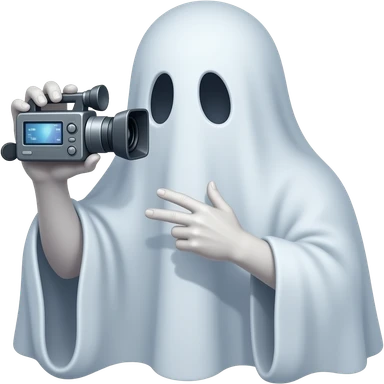 Haunting realistic ghost recording a video. Holding the video recorder emoji