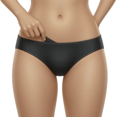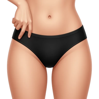 Female legs spread open wearing a black panty with her hand own her panty emoji