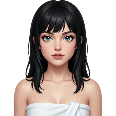 Sexy gothic black haired woman in towel and wet emoji