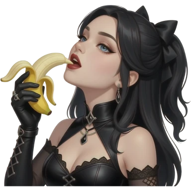 Sexy gothic black haired woman tilting her head up eating a banan seductively emoji