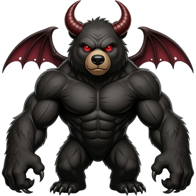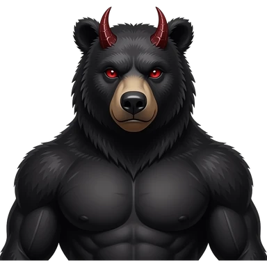 Dark Demon bear with red eyes and with chest muscles. emoji
