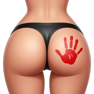 Big fwmle bum in. Leather thong oanty with a red hand print on the one bum cheek emoji