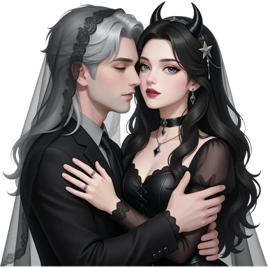 Sexy gothic couple cuddling. Realistic emoji