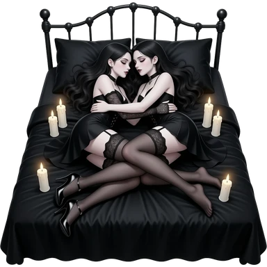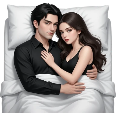 Sexy gothic couple laying down in bed and cuddling. Realistic emoji