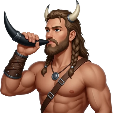 Dark sexy bwarded viking muscular no shirt, dri king out of a Black horn. Fantasy. Realistic emoji