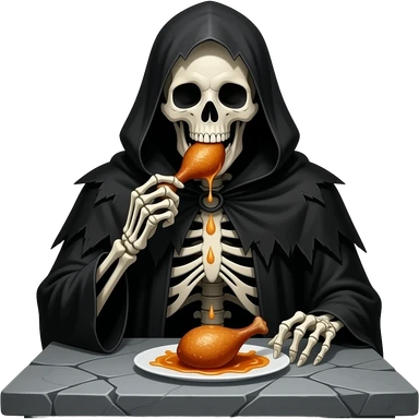 Gothic skeleton eating. Chicken drumstick emoji
