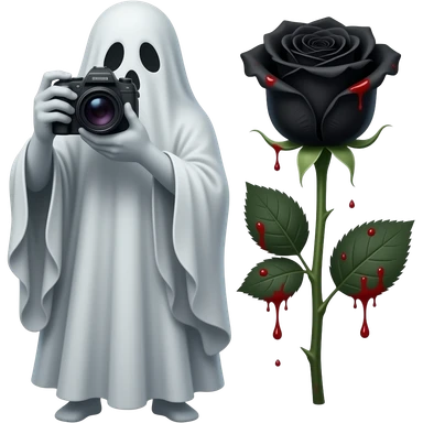Open Black rose with blood droplets on it. Haunting realistic ghost taking pgoto emoji