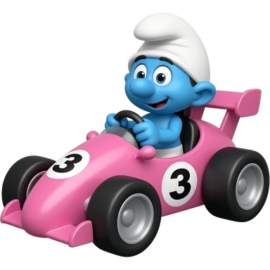 Papa Smurf as a racing driver driving a pink car with P3 on the side emoji