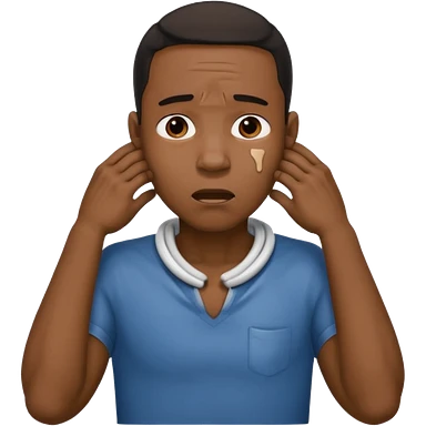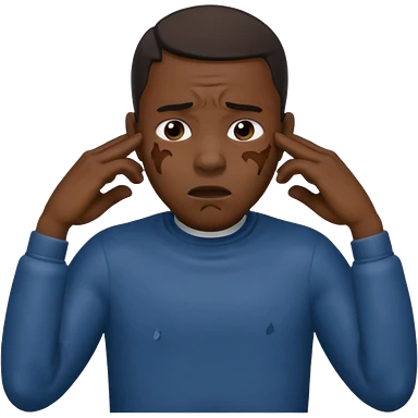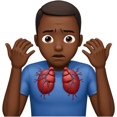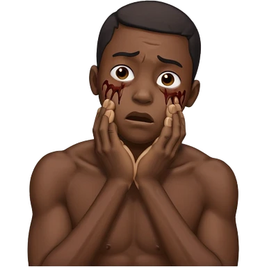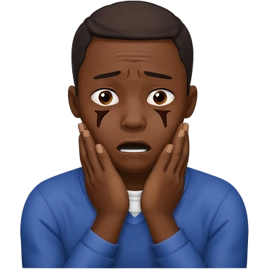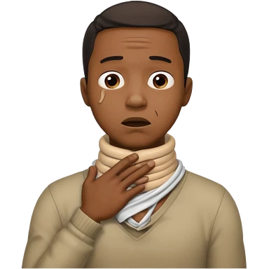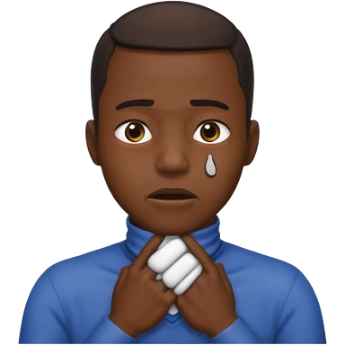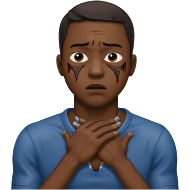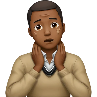 make a photo of a black man who is choking himself with his hands but his hands are on his neck emoji