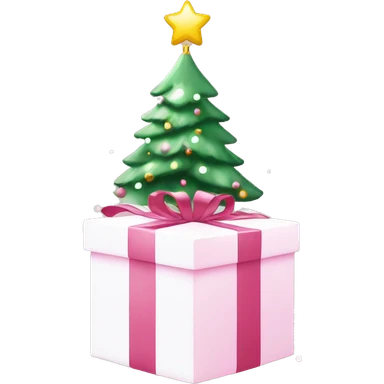 Light pink Christmas gifts under a white Christmas tree emoji