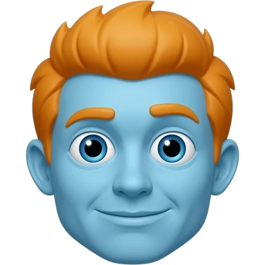 Classic smiley, but blue, and small patch of orange hair at the top emoji