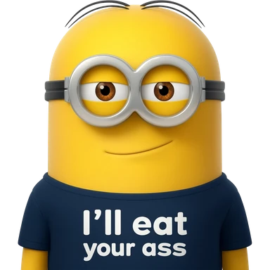 Make a minion that has a shirt that says I’ll eat your ass emoji