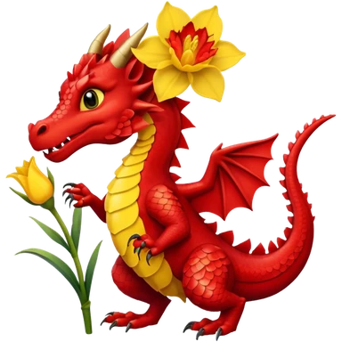 Red Welsh dragon holding a daffodil emoji